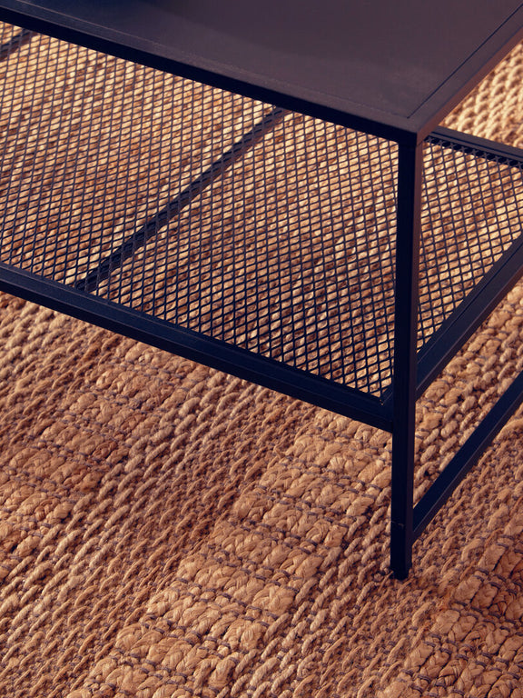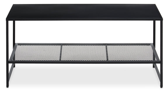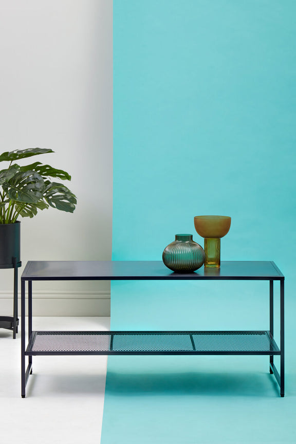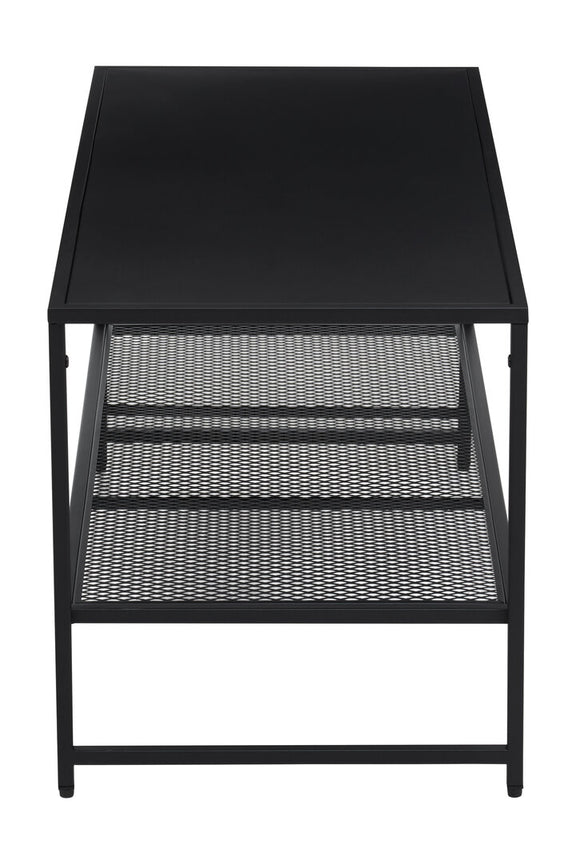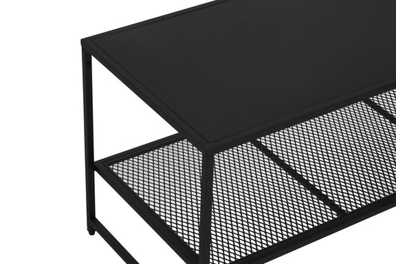 Acero black powder coated metal coffee table with mesh shelf