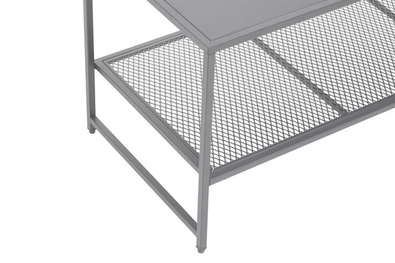 Acero grey powder coated coffee table with mesh shelf