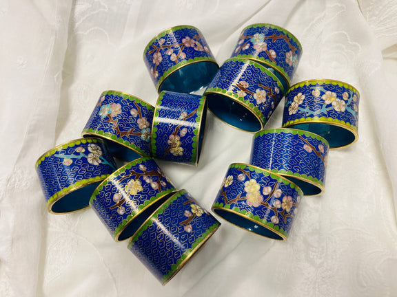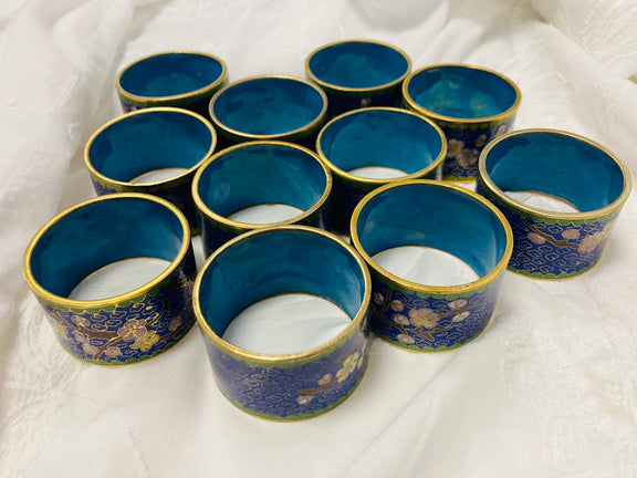 This set of 11 ornate beautifully crafted napkin rings are in the classic Chinese/French cloisonné enamel design.
