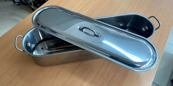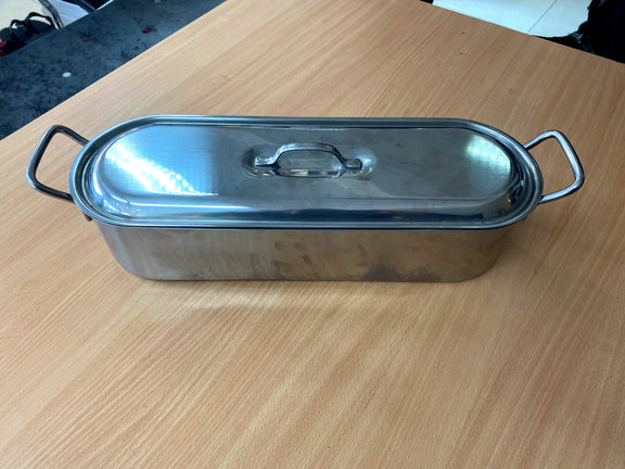 This medium sized rectangular pot for boiling or steaming fish can also be used for vegetables, or a fish casserole.